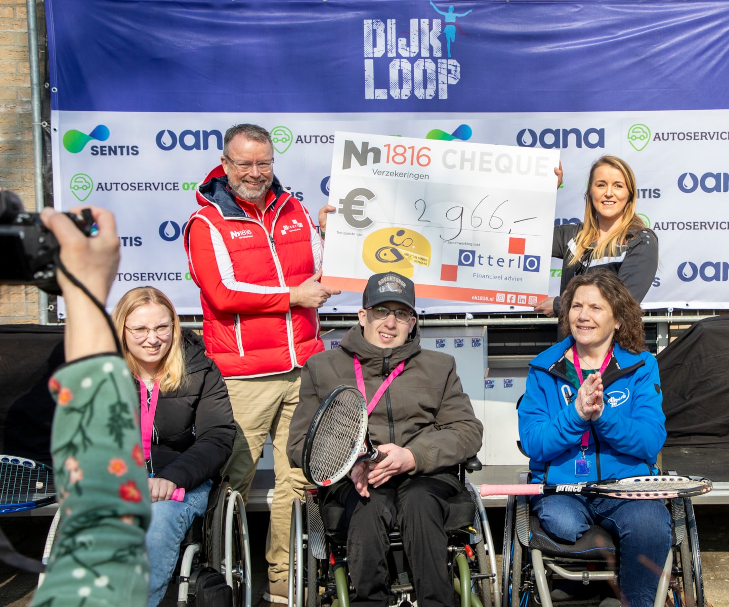 Een extra bijzonder moment was de uitreiking van een cheque van €2.966, die wij samen met Nh1816 hebben mogen overhandigen aan Rolstoeltennis Alkmaar. Een initiatief dat wij van harte steunen en dat perfect past bij de inclusieve en sportieve gedachte van de Dijkloop.